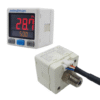 IP40, 3-color digital LCD display. Main/Sub-Display, 4 digits 7 segment LCD display. Programmable pressure unit : kPa、MPa、kgf/cm²、bar、psi、inHg、mmHg. Dual LCD display allows setting value to be displayed. Key lock indicator. Power-save mode. Fine adjustment mode.