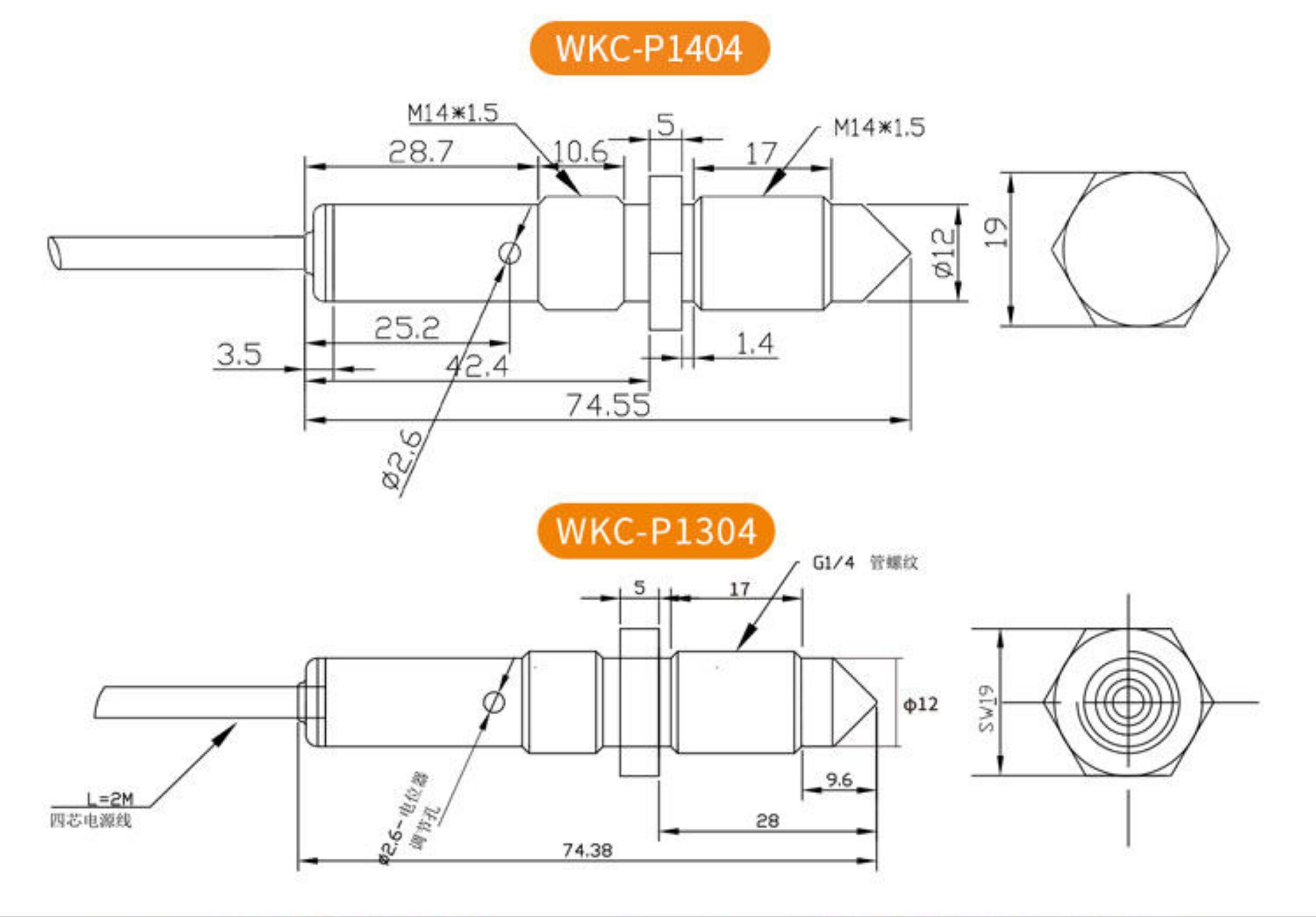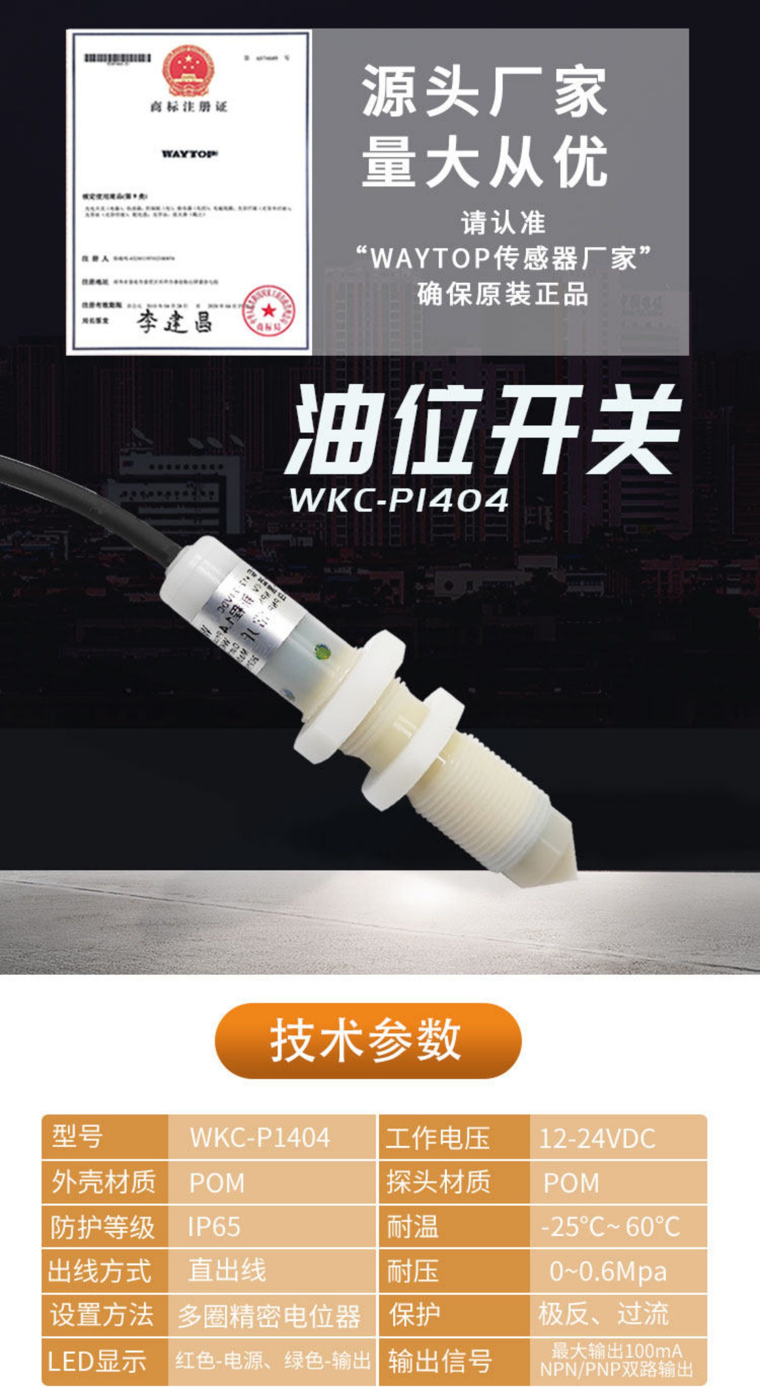 Cảm biến mức chất lỏng điện dung P1404 (M14*1.5 POM)