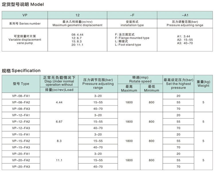 • Đầu bơm thủy lực bơm cánh gạt VP-20-FA3