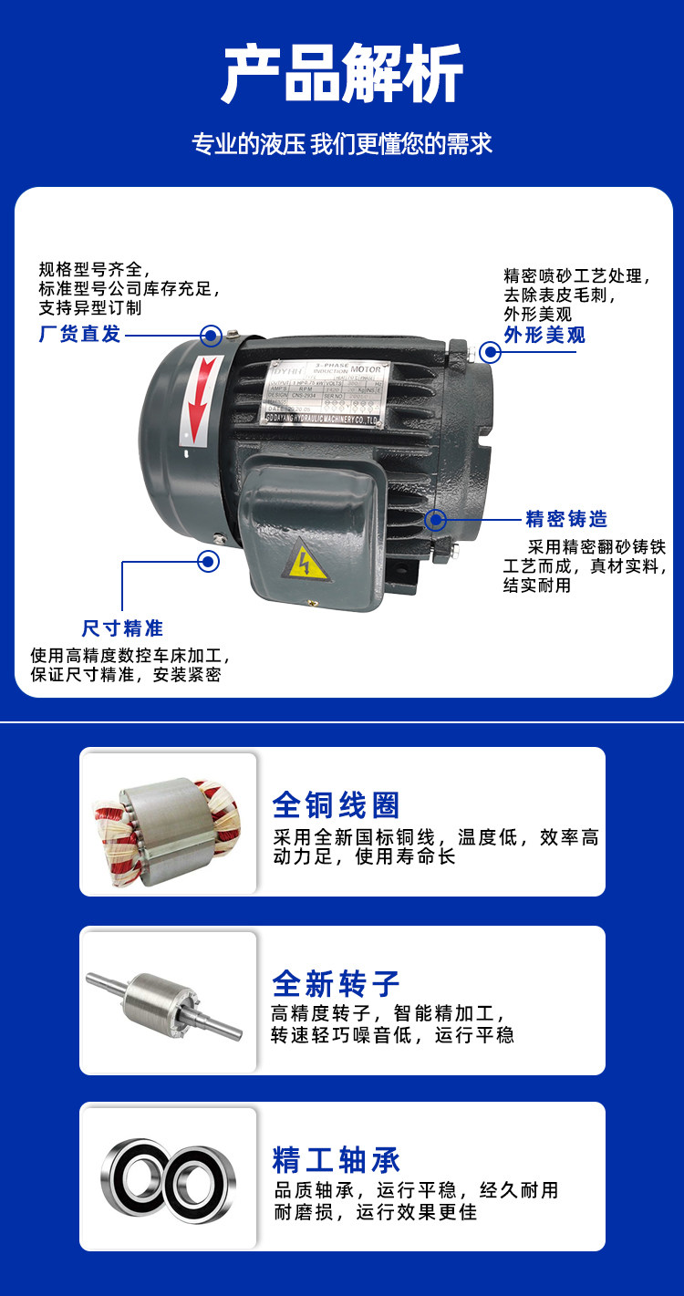 • Động cơ bơm dầu thủy lực 0,75KW; 1,5KW; 2,2KW