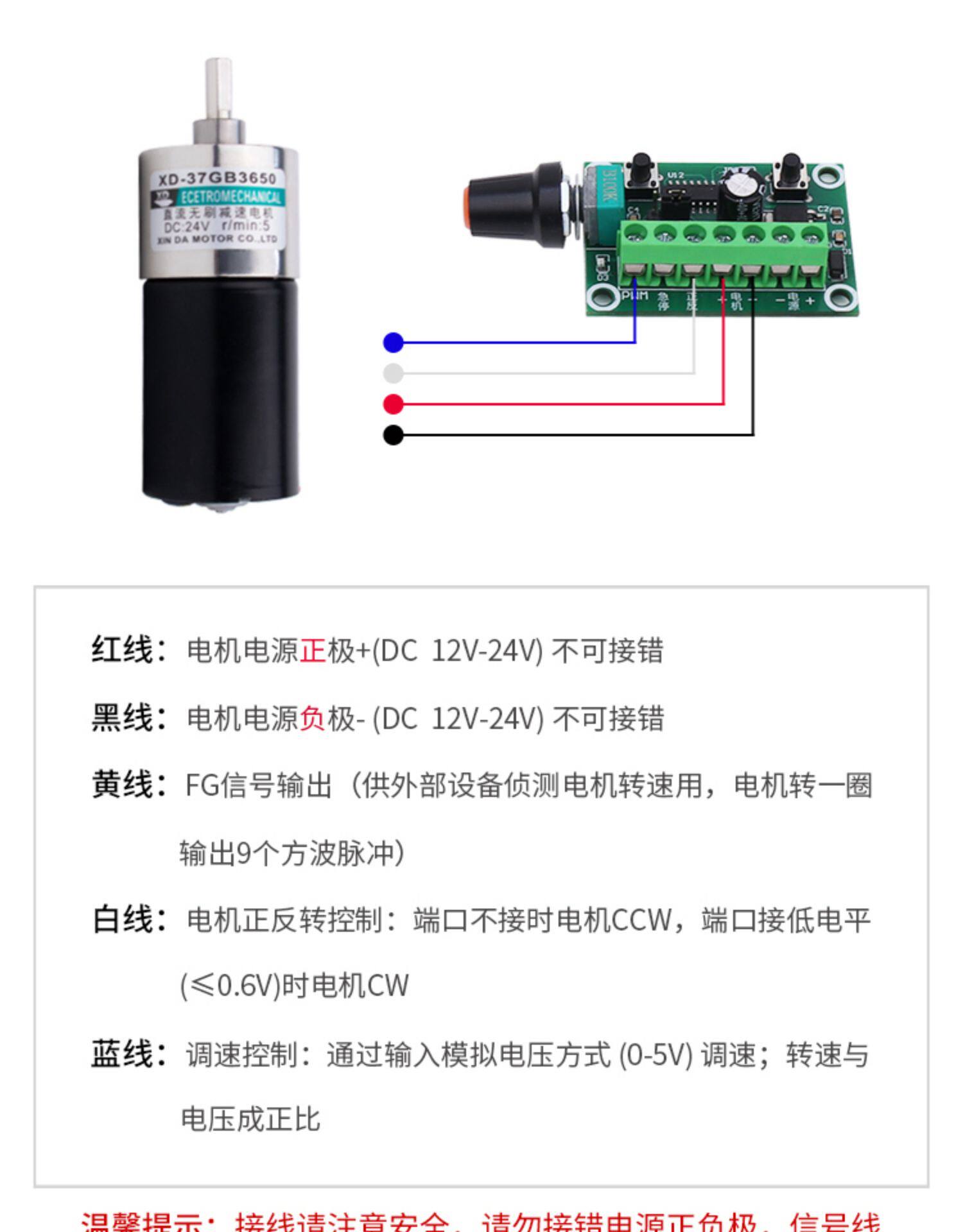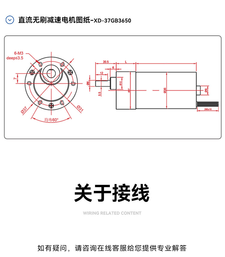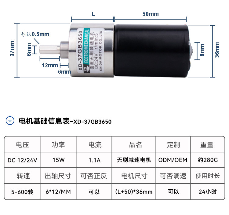Động cơ DC không chổi than 37GB-3650, 12V/24V