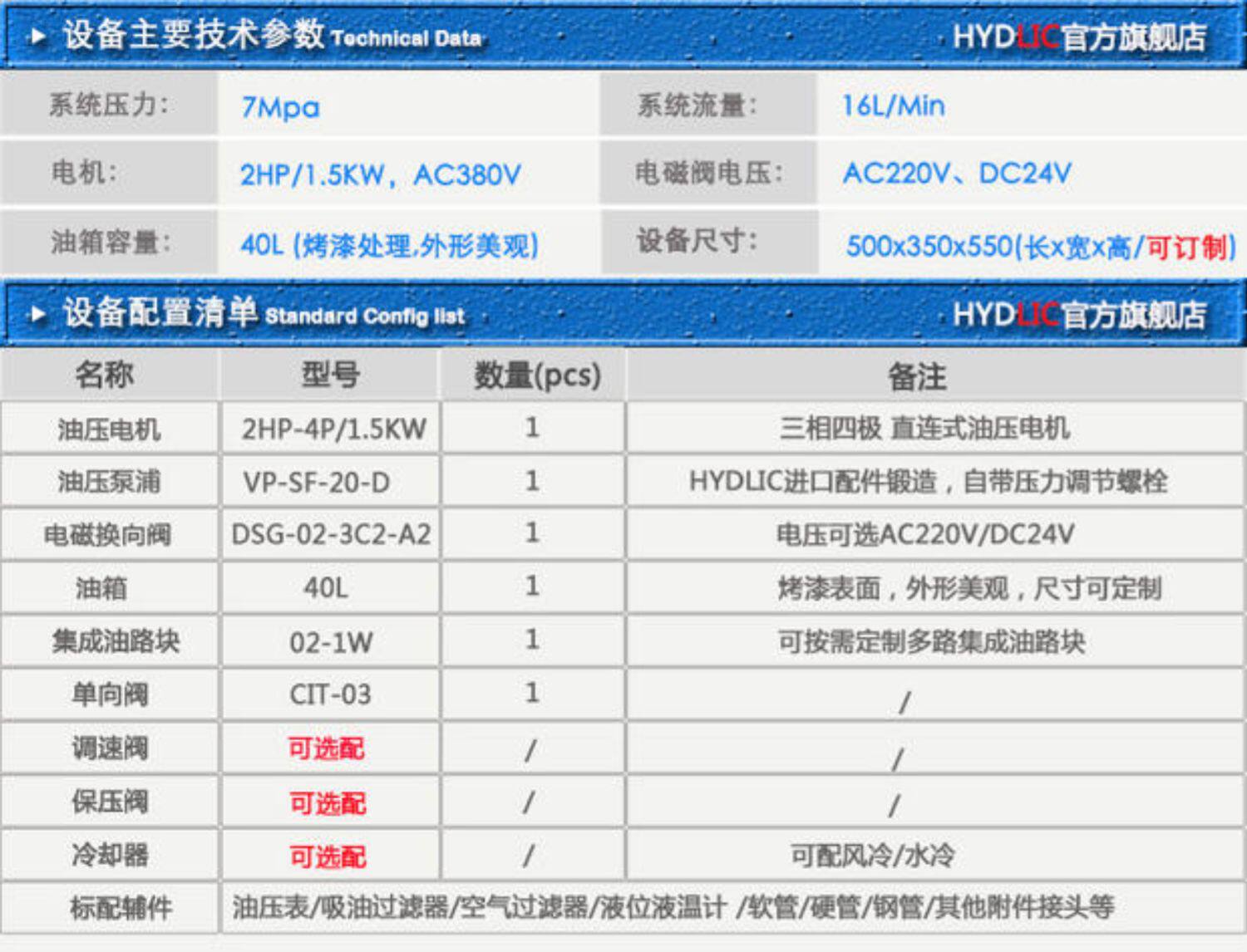 Hệ thống thủy lực trạm nguồn thủy lực tần số cao, bơm dầu và xi lanh 0,75KW đến 15KW