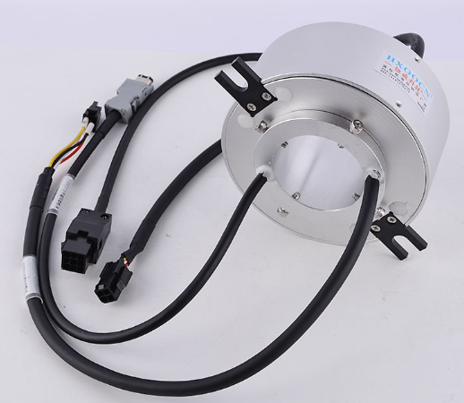 Vòng trượt tín hiệu xuyên lỗ là một thiết bị truyền động quay được thiết kế đặc biệt, chủ yếu được sử dụng để truyền tín hiệu điện, tín hiệu dữ liệu hoặc công suất giữa các bộ phận quay và bộ phận cố định. Đặc điểm chính của nó là một lỗ xuyên tâm (lỗ dẫn hướng), cho phép các bộ phận khác (như trục, ống hoặc cáp) đi qua tâm của vòng trượt, do đó tiết kiệm không gian và đơn giản hóa cấu trúc thiết bị.